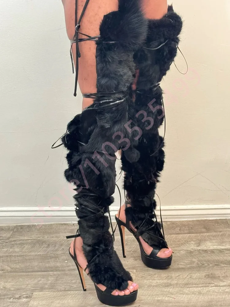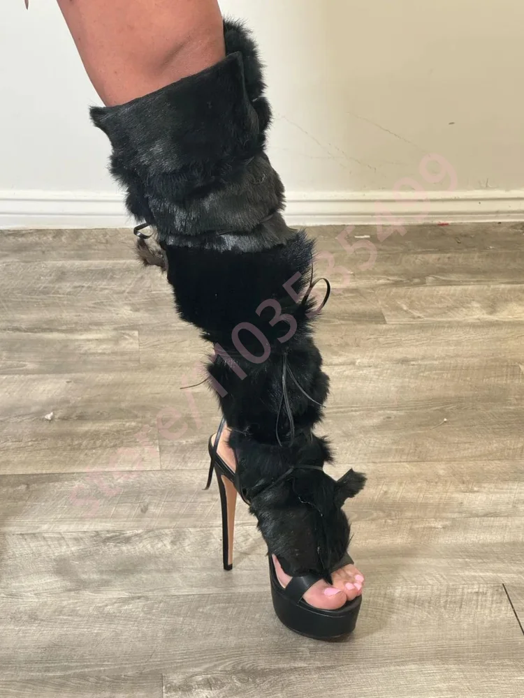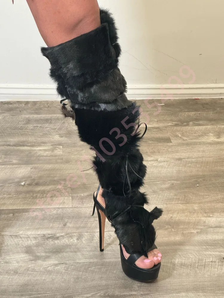 Command attention wherever you go with the Snow Siren Bootsthe ultimate fusion of luxury, street fashion, and Y2K sensuality. These open-toe, over-the-knee stilettos redefine cold-weather glamour with plush faux fur accents and sleek strappy detailing. Perfect for catwalk looks, nightlife, or making a bold fashion statement, these boots embody 2025’s hottest trend: winter heat meets runway elite.